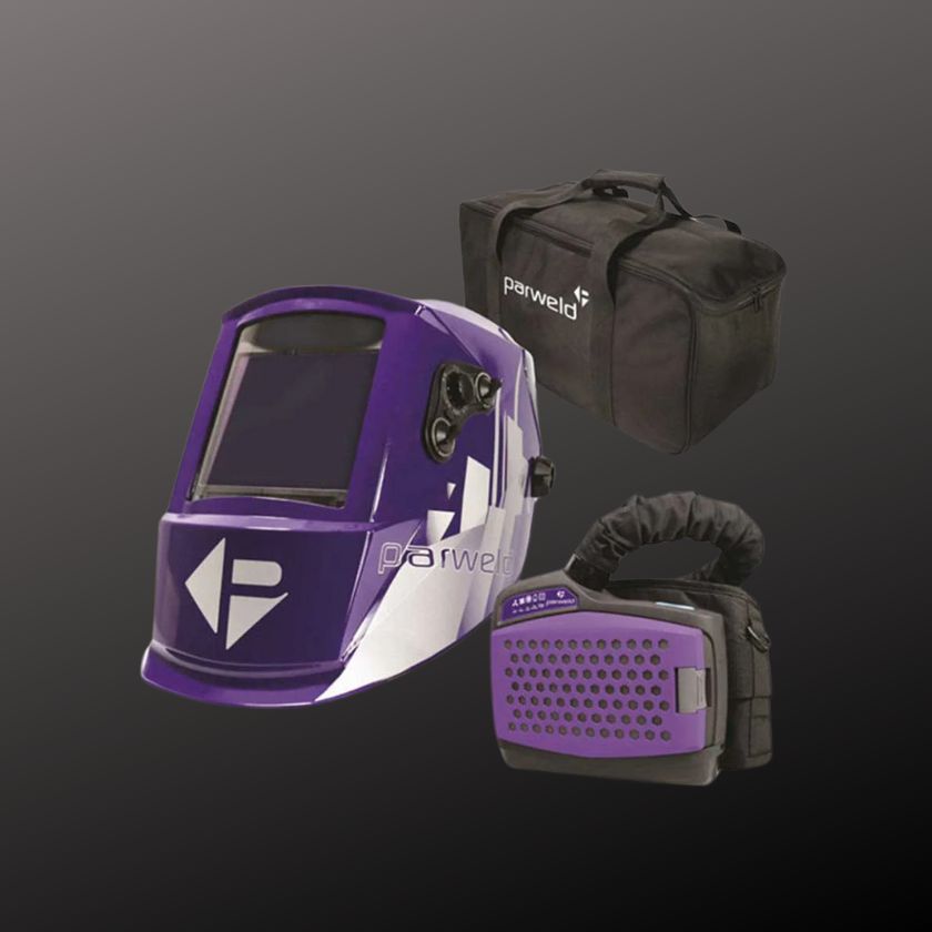 Air fed welding helmets are designed o be the same size as a normal welding helmet. All the breathing apparatus is confined to inside the welding helmet. The respirator is designed to be placed into the small of the back on a belt. This makes the whole unit more compact and easier to wear in confined spaces and for long periods.