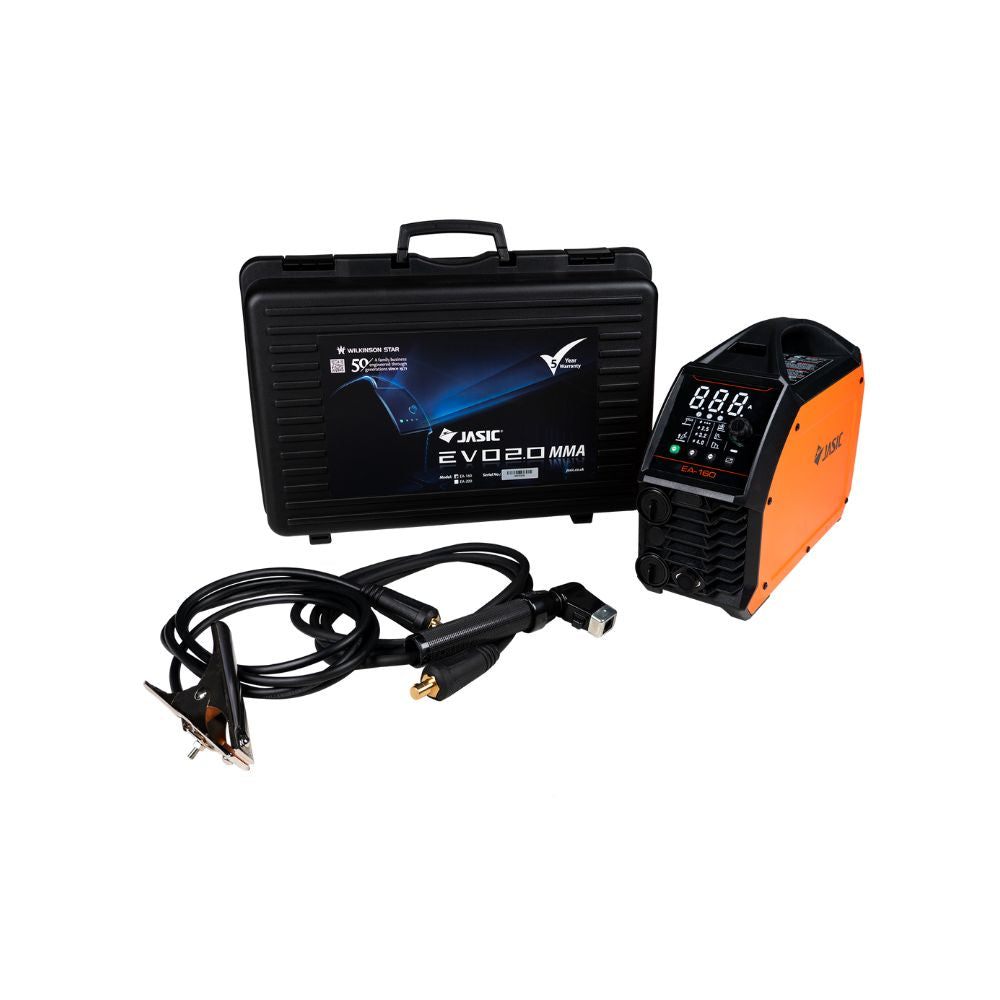 The Jasic EVO Arc 160 PFC Inverter is designed for versatility and can be used both in workshops and on-site. Its compact size and lightweight design make it portable and easy to transport. The machine features heavy-duty 16-25mm dinse sockets, which provide a secure connection for welding cables.