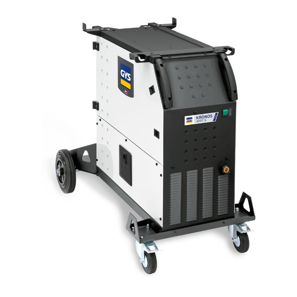 The GYS KRONOS 400T G is a high-performance, three-phase multi-process inverter welder designed for the most demanding MIG/MAG, MMA, and TIG DC welding applications. Built in France, this machine delivers exceptional arc stability, precision control, and reliability across multiple materials, including steel, stainless steel, aluminium, and flux-cored wire. Equipped with an intuitive 3.5” colour multilingual interface and dual Easy/Expert display modes, it provides effortless control and parameter adjustment even while wearing gloves. The KRONOS 400T G integrates digital synergy technology for automatic parameter optimisation, resulting in spatter-free, consistent welds. Its IP23S rating, reinforced chassis, and compatibility with the WF 35 wire feeder make it ideal for professional workshops requiring both flexibility and durability.