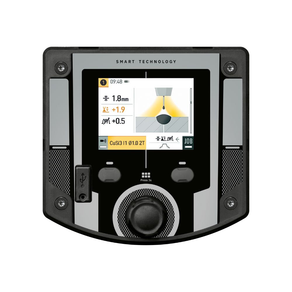 It supports steel, stainless steel, aluminium, and flux-cored wires, each with dedicated synergy programs for easy setup and precision control.