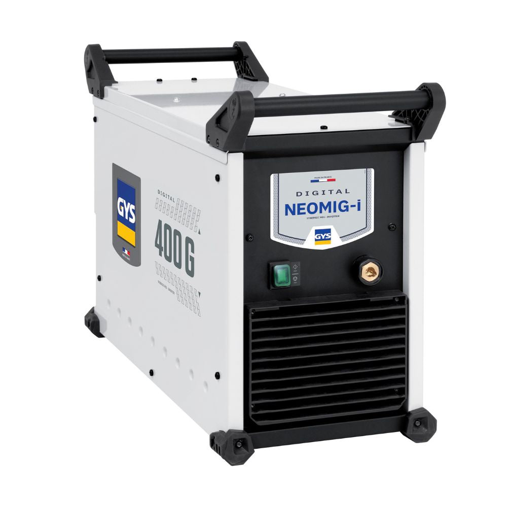 The GYS NEOMIG-i 400 G is a high-performance three-phase multi-process inverter power source designed for advanced industrial welding. Delivering up to 400A at 100% duty cycle, it offers exceptional arc stability and precision for MIG/MAG, MMA, and TIG DC welding applications. Its intelligent digital control system ensures smooth ignition, consistent performance, and reduced spatter across all materials — from steel and stainless steel to aluminium and brazing wires. Equipped with integrated synergy programs, the NEOMIG-i 400 G automatically sets the optimal welding parameters based on wire diameter, gas type, and material thickness. Compatible with WF 35 and WF 50 wire feeders, and optional KOOLWELD 2 liquid cooling, this robust machine is engineered for maximum productivity, reliability, and traceability in the most demanding workshop environments.