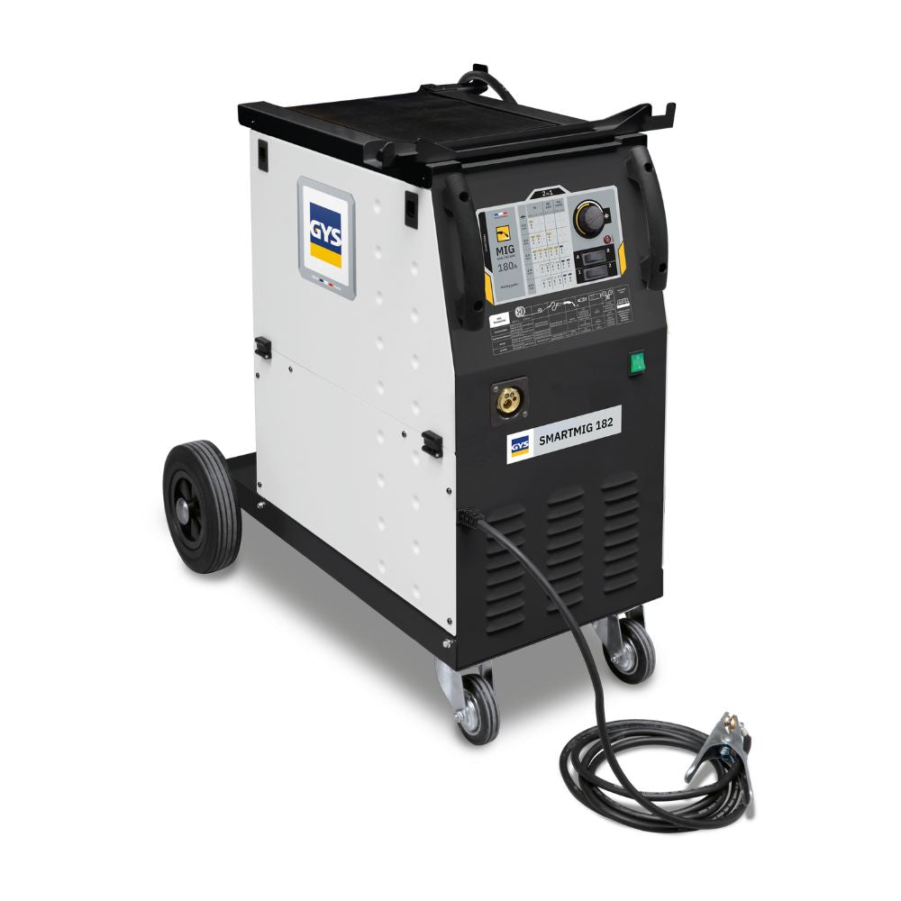 The GYS SMARTMIG 182 is a 180-amp single-phase MIG-MAG welding unit designed for workshop assembly, repair, and maintenance tasks on steel, stainless steel, and aluminium. Built to handle everyday industrial and automotive repair work, it offers dependable power with low energy consumption and runs on a standard 230V / 16A supply (13A UK compatible). The intuitive SMART control panel enables users to select wire type, diameter, and material thickness, automatically matching voltage and wire feed speed for smooth, accurate welding. The unit features a EURO-torch connection for easy liner and wire changes, a 40 W motor for consistent wire feed, and dual GAS / NO GAS (2-in-1) capability for indoor and outdoor use. Compact yet powerful, the SMARTMIG 182 is ideal for professional workshops requiring reliable performance without complicated setup.