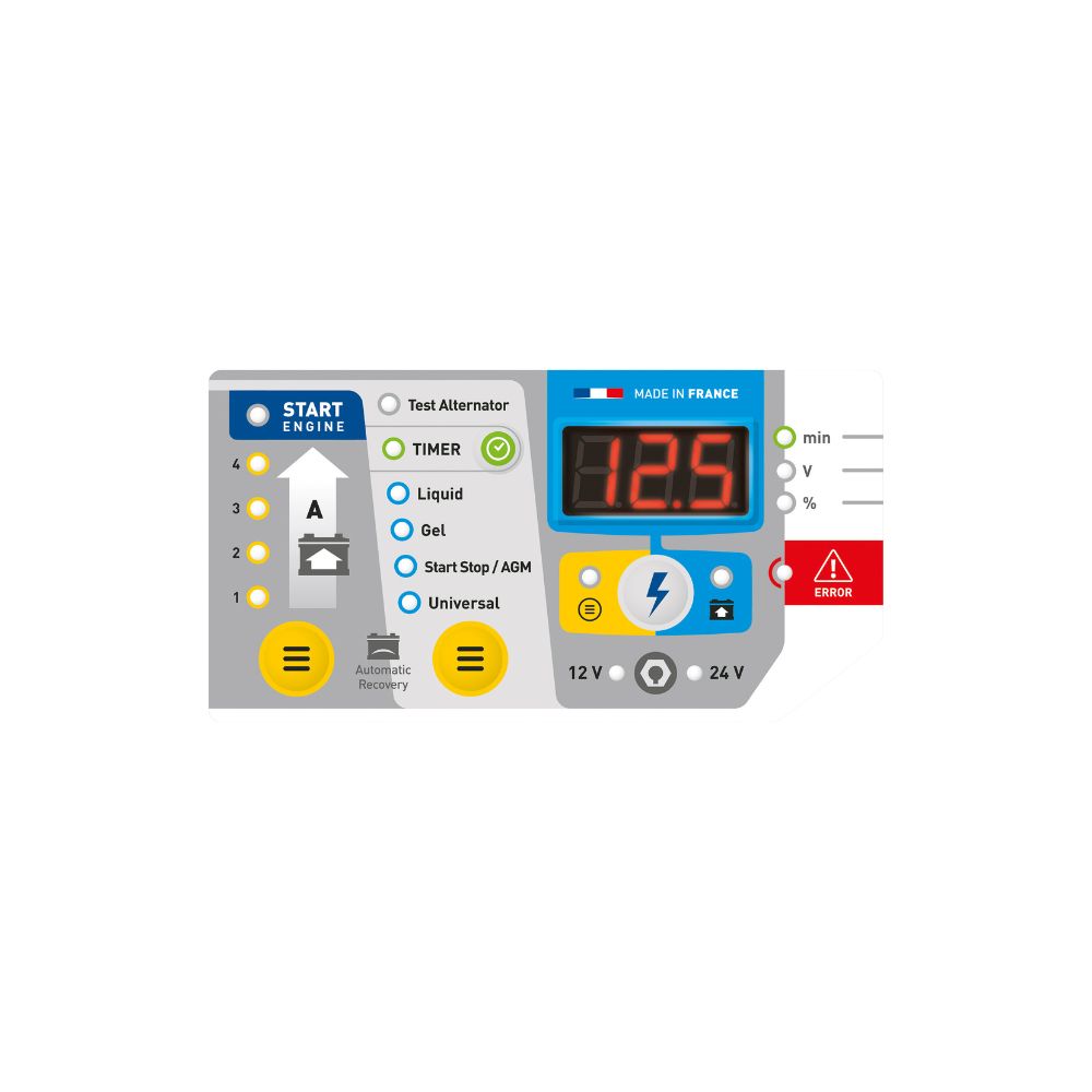 The GYS STARTIUM 480E is a fully automatic, microprocessor-controlled 12V and 24V starter charger designed for professional use in automotive workshops, fleet service bays, and vehicle maintenance centres. Made in France, this versatile unit safely charges and starts all modern battery types including AGM, Gel, and liquid lead-acid, as well as Stop/Start systems. Featuring intelligent charging algorithms and a robust 280A starting capability, it ensures full recovery of discharged batteries while maintaining vehicle electronic safety. The STARTIUM 480E provides advanced diagnostic features such as alternator testing, fault code display, SOS recovery, and smart start protection — all visible on a digital control screen. Built for durability, it’s housed in a rugged steel chassis with insulated heavy-duty clamps, making it a dependable and safe choice for daily workshop use.