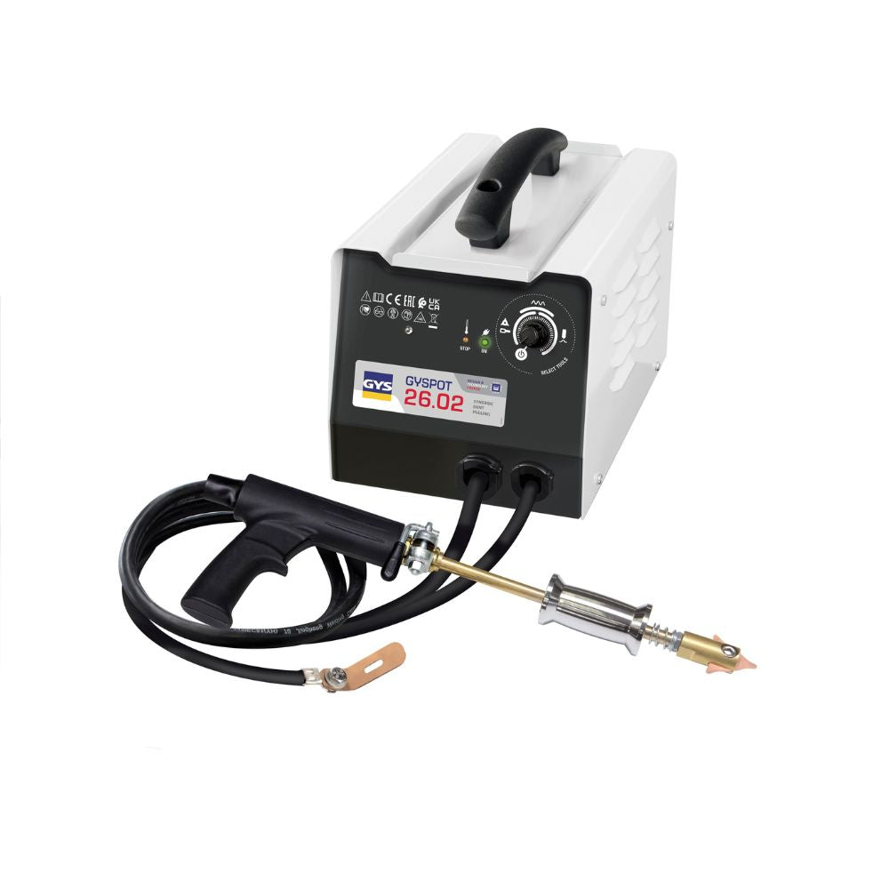 The GYSPOT 26.02 Steel Dent Puller is a powerful and efficient tool designed for auto body repair shops and professionals. This 230V dent puller features a robust steel construction, adjustable grips, and a powerful vacuum system to effectively remove dents and dings from various vehicle surfaces. With its easy-to-use design and high-performance capabilities, the GYS 39.02 Steel Dent Puller is an essential addition to any auto body repair workshop.